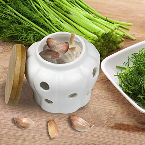 Use of high quality strengthen porcelain and natural bamboo make the ceramic garlic keeper.
