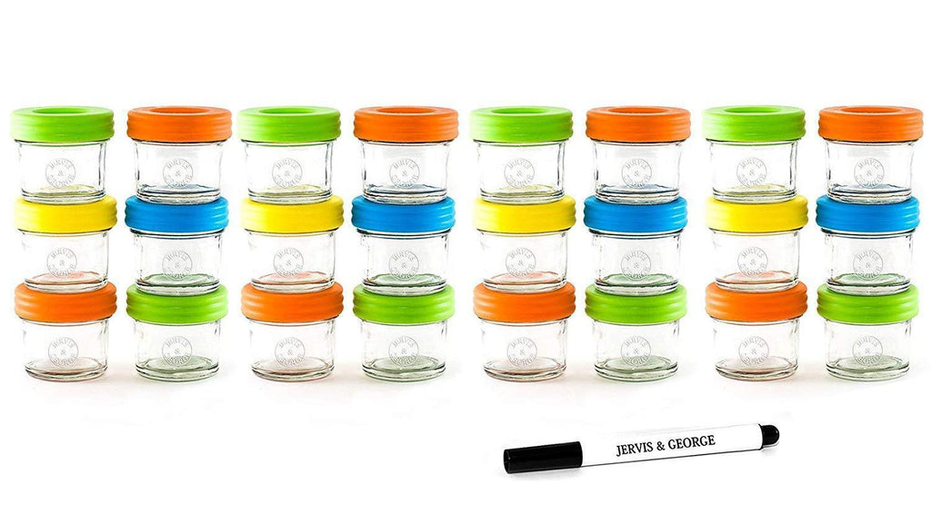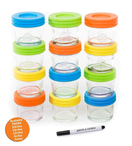 Glass Baby Food Storage Containers - Set contains 12 Small Reusable 4oz Jars with Airtight Lids - Safely Freeze your Homemade Baby Food