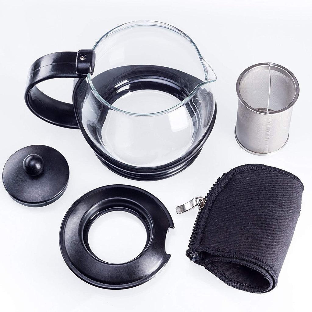TEAPOT FOR THE MODERN HOME – Looks beautiful on your table it has an insulated, sturdy black frame made. Easy to wipe clean and durable for many years of delicious cups of tea. This unique design allows you to see the tea changing colors. STYLISH MATCHING BLACK TEA COZY KEEPS YOUR TEA WARM - No need for reheating. Keeps your glass teapot warmer for hours. It has a chic design, it resists stains and odors plus it's dishwasher safe and easy to clean.