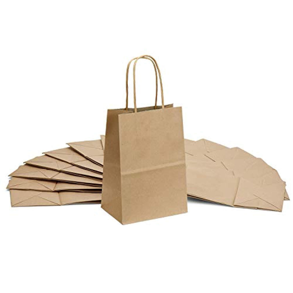 Halulu 100pcs 5.25" x 3.75" x 8 " Brown Kraft Paper Bags,Handled, Shopping, Gift, Merchandise, Carry, Retail,Party Bags