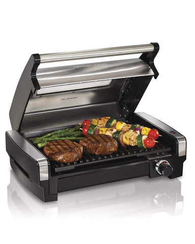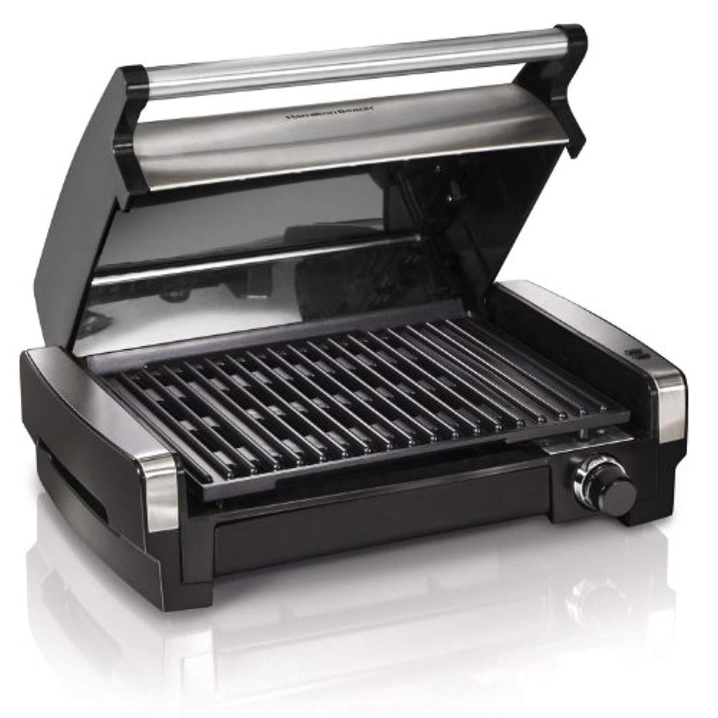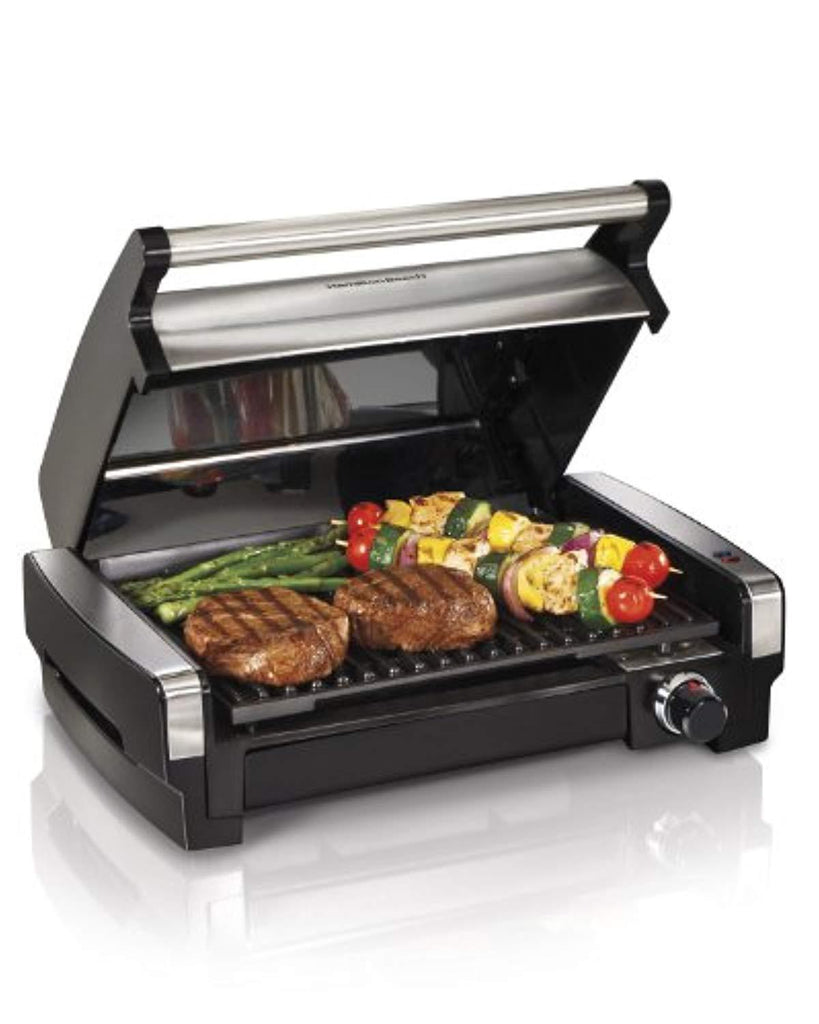Hamilton Beach Electric Indoor Searing Grill with Removable Plates and Less Smoke, One Size, Brushed Metal