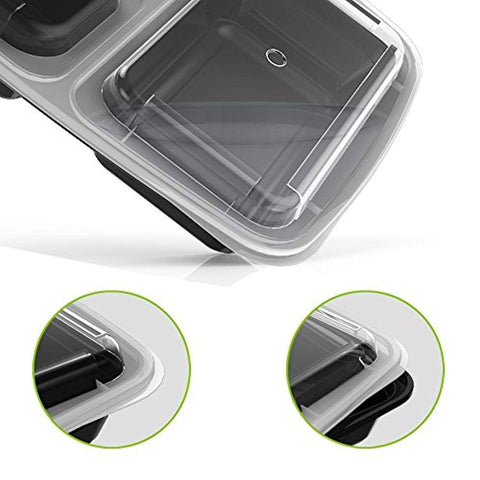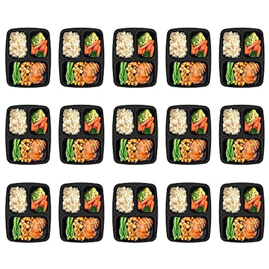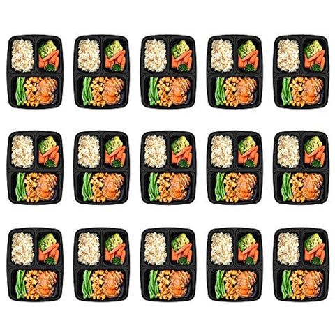 Homgeek 15-Pack Meal Prep Containers 3 Compartment BPA-Free Food Storage Stackable Reusable Microwave Dishwasher & Freezer Safe Bento Lunch Boxes with Airtight Leads for Portion Control