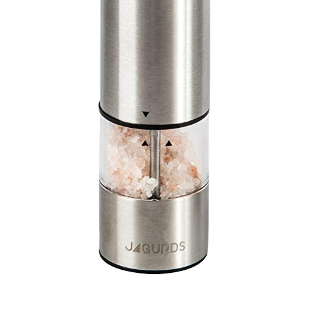 Jagurds Electric Salt and Pepper Mill Set - Premium Stainless Steel One-Handed Spice Grinders with Light, Automatic Battery Operated with Adjustable Coarseness for That Perfect Savory Seasonings