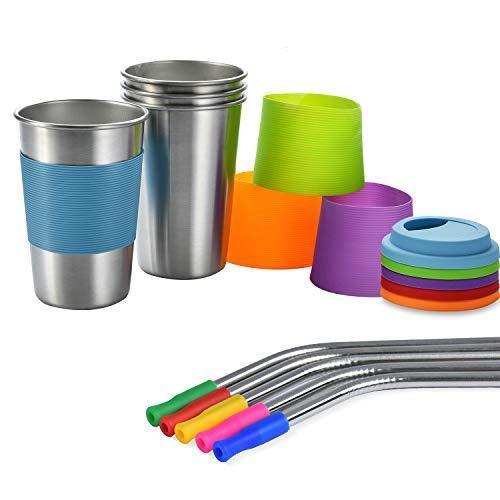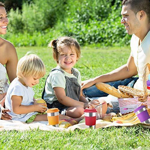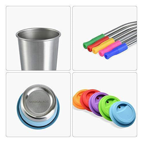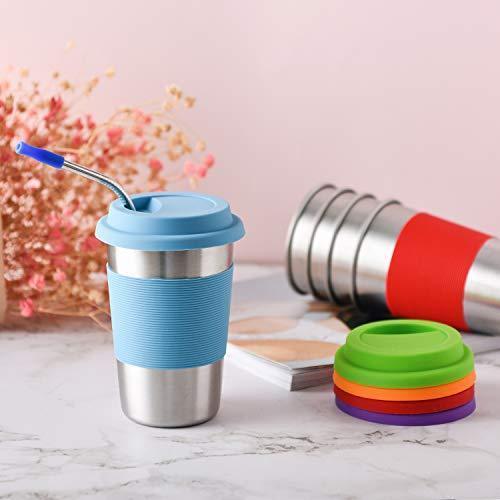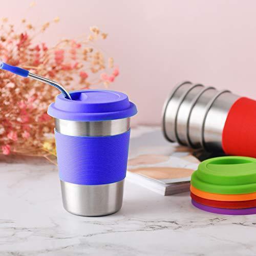 Kids Stainless Steel Cups 12 oz With Silicone Lids & Straw 5 Pack Drinking Tumblers for Adults, Children and Toddlers