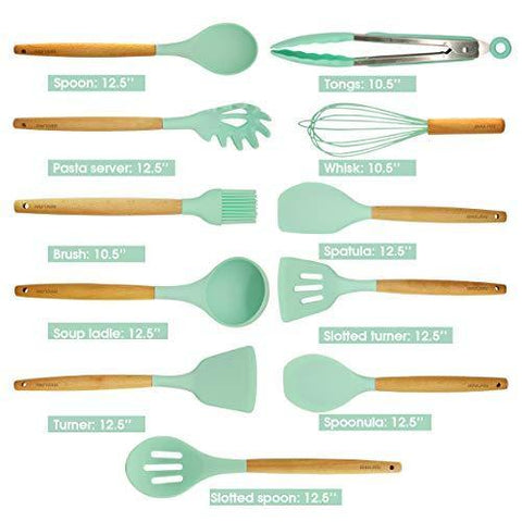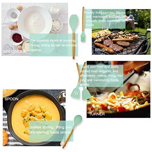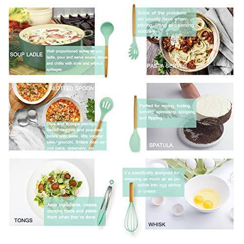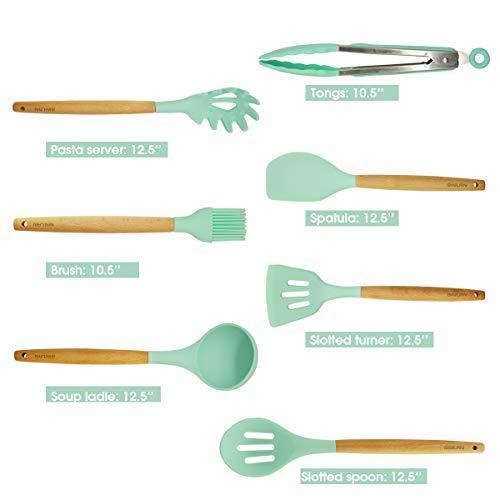 Kitchen Utensil Set Silicone Cooking Utensils, 11pcs Premium Non-stick Natural Beech Wooden Handle, BPA Free Cookware Protect Gift for Mom Family by BINLAN