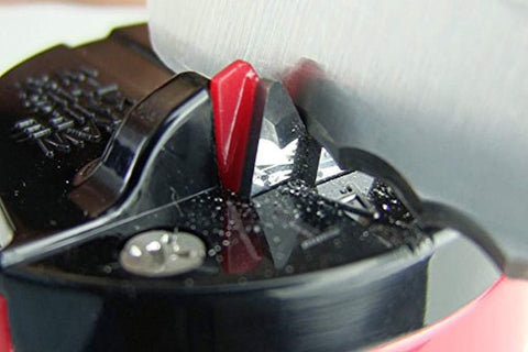 MAKES AN OLD KNIFE CUT LIKE NEW- Sharpen the dullest knife in your drawer even Grandmas’ blunt butter knife. INCREDIBLE SUCTION CUP BASE– Safely secures to any smooth, clean surface ONE HANDED– Attach and Sharpen with just one hand TRULY VERSATIL– Sharpen blender blades, peelers, even rusty old secateurs SET AT THE PERFECT ANGLE– the v shaped tungsten carbide tooling is set at the optimum angle so there’s no skill required.