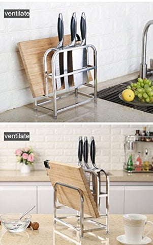 Knife Drying Rack Stainless Steel Knife Block w\ Cutting Board Hoder