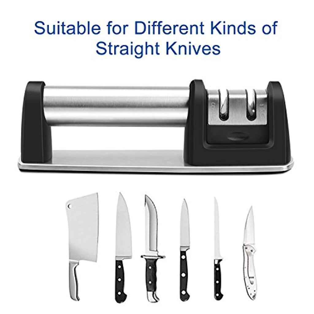 Knife Sharpener, Safe Kitchen Knife Sharpeners Handle for Straight and Serrated Knives Diamond Coated Quickly, Safe and Easy to Use by Hilife