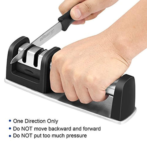 Kitchen Knife Sharpener: Our non-slip grip bottom keeps the sharpner steady and easy to hold. Sharpening has never been easier. Stores easily either in the drawer or on the counter top.