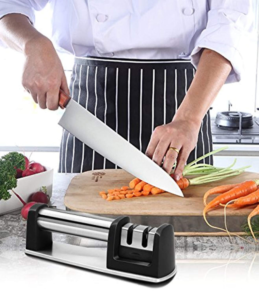 Safe Knife Sharpeners: Repolish your old set of knives rather than spend a small fortune on a new set. You can sharpen all your dull knives and bring them back to their full glory.