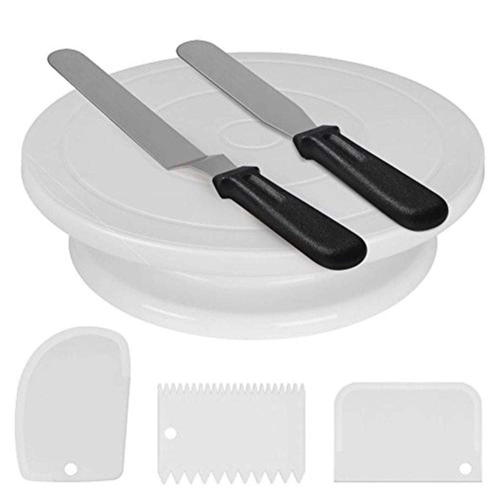 Kootek 11 Inch Rotating Cake Turntable with 2 Icing Spatula and Icing Smoother, Revolving Cake Stand White Baking Cake Decorating Supplies