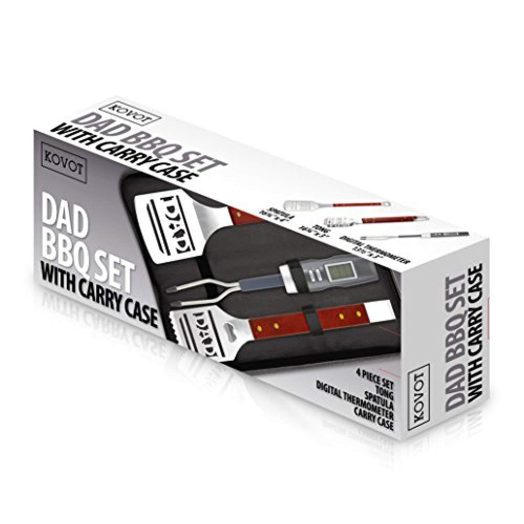 Kovot Dad BBQ Grill Set with Carry Case - 4 Piece Grill Set Includes Spatula, Tongs, Digital Thermometer and Carry Case (Dad BBQ 4-Piece Set)