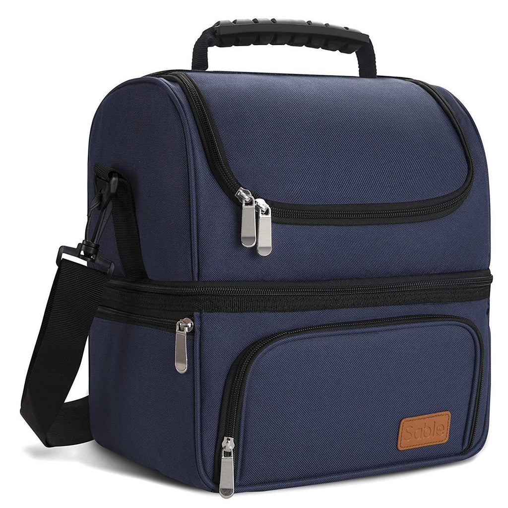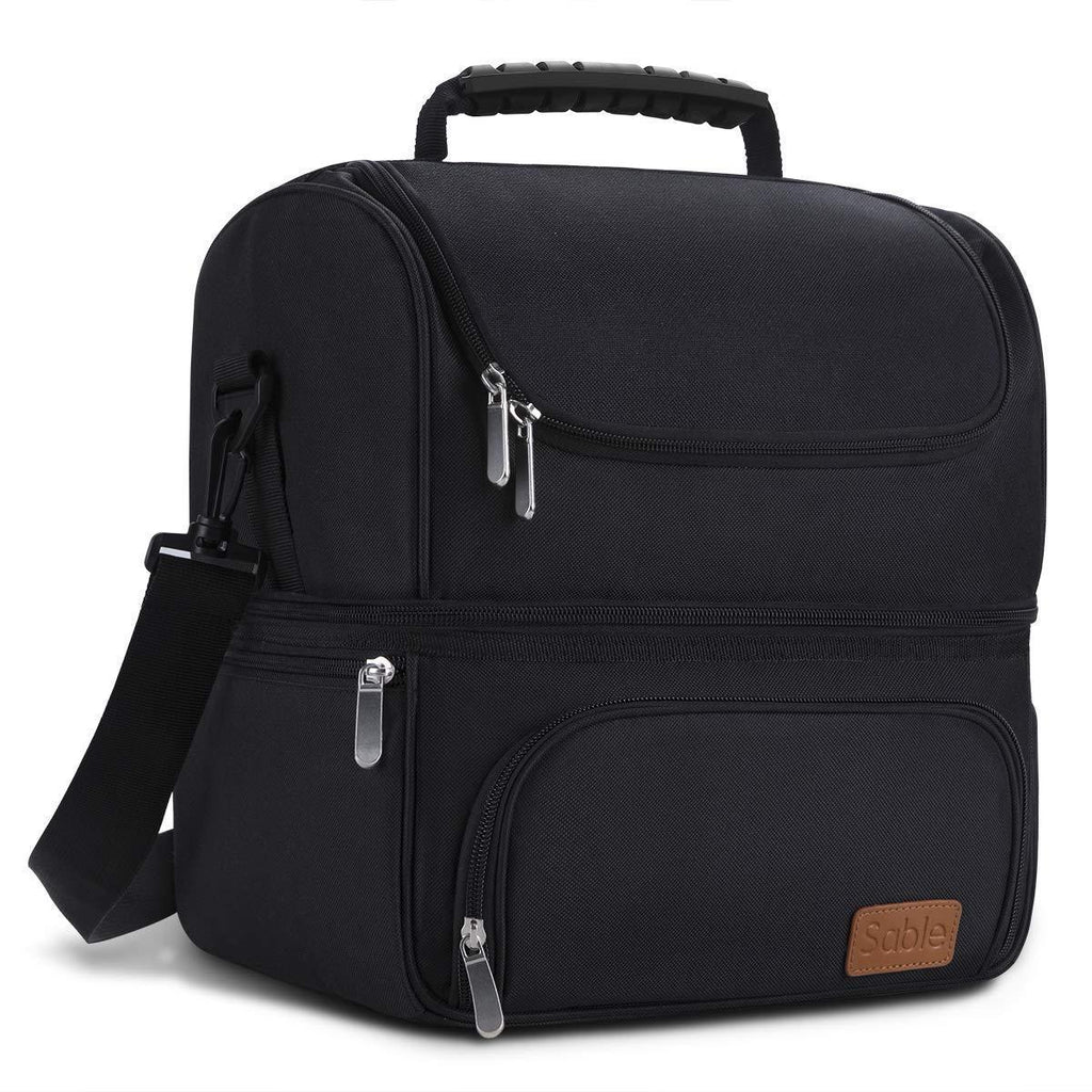 Large Lunch Box for Men, Insulated Adult Lunch Bag, Sable Reusable Waterproof Cooler Tote Bag for Meal Prep with 2 Main Spacious Compartments