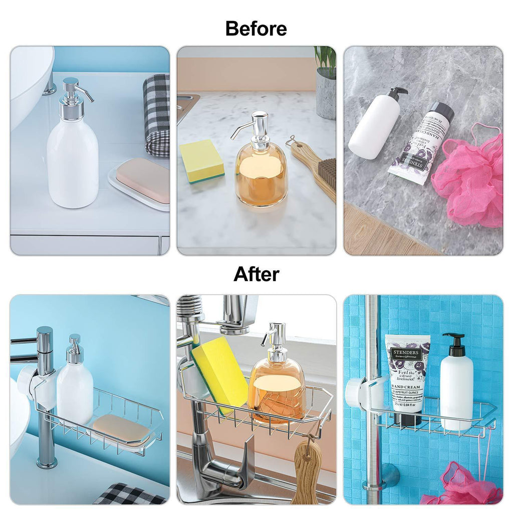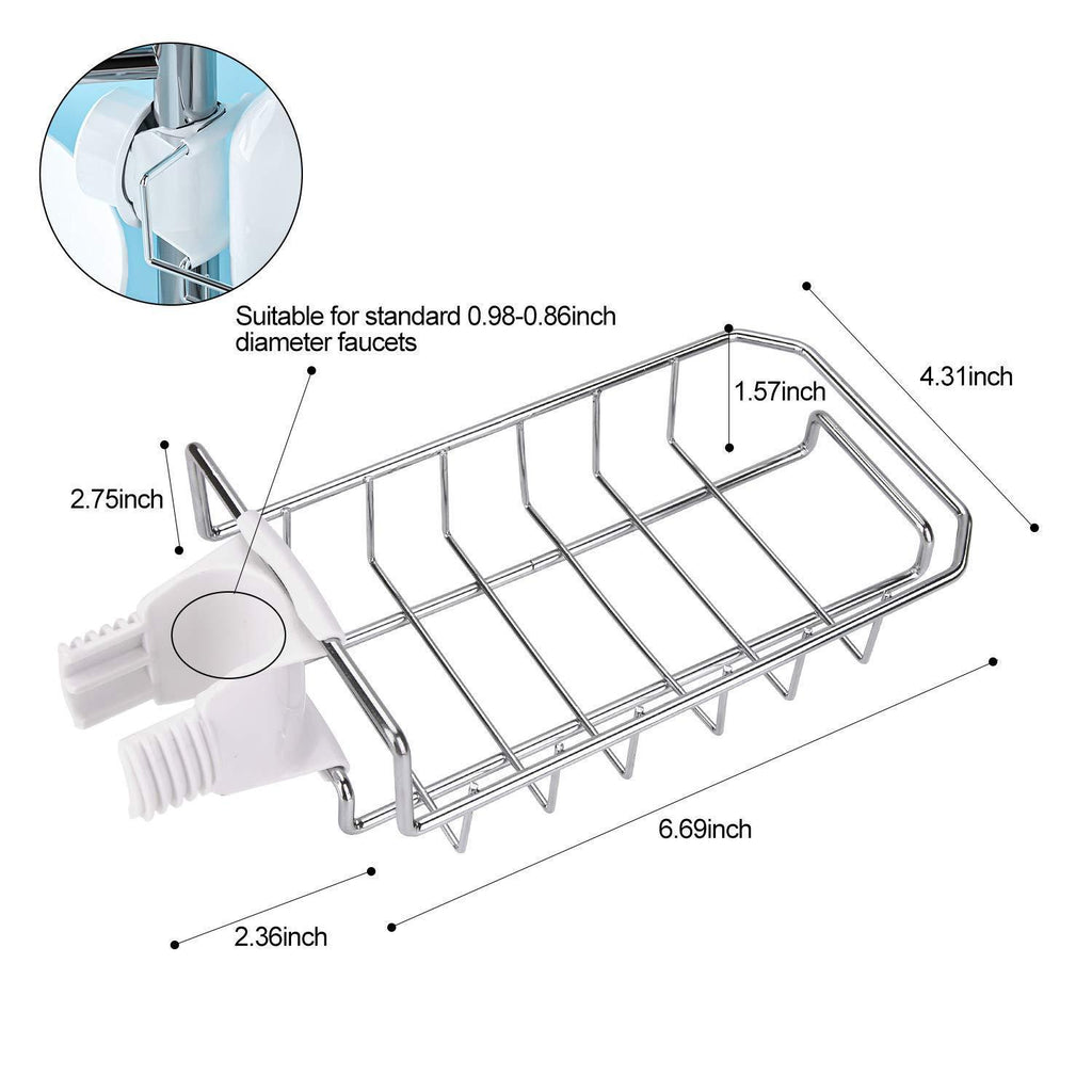 PREMIUM STAINLESS STELL: The kitchen sponge holder is made of advanced stainless steel, rust resistant. Strong Bearing Capacity ensure this kitchen organizer sink caddy lasts for years to come.