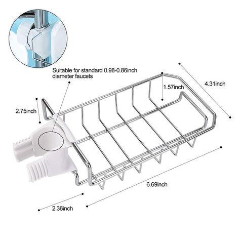 CLAMP DESIGN, EASY TO INSTALL: Clip on the tap, easy to use. The mat accessories can adjusting the tightness. This kitchen sponge holder ONLY fit for round faucets with a diameter of 0.86-0.98 inches, not fit for other size round faucets or square faucets.