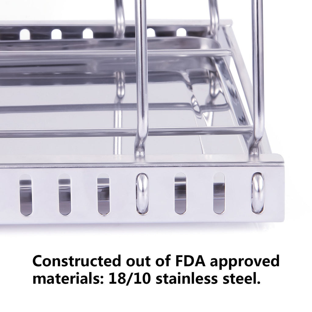 DURABLE HEAVY DUTY CONSTRUCTION - Improving upon the chromed steel racks, Lifewit Cookware Rack is made of FDA approved material food-grade 304 stainless steel that's anti-rust, stain resistant & corrosion resistant to ensure easy cleaning, optimal esthetics, and lasting durability.