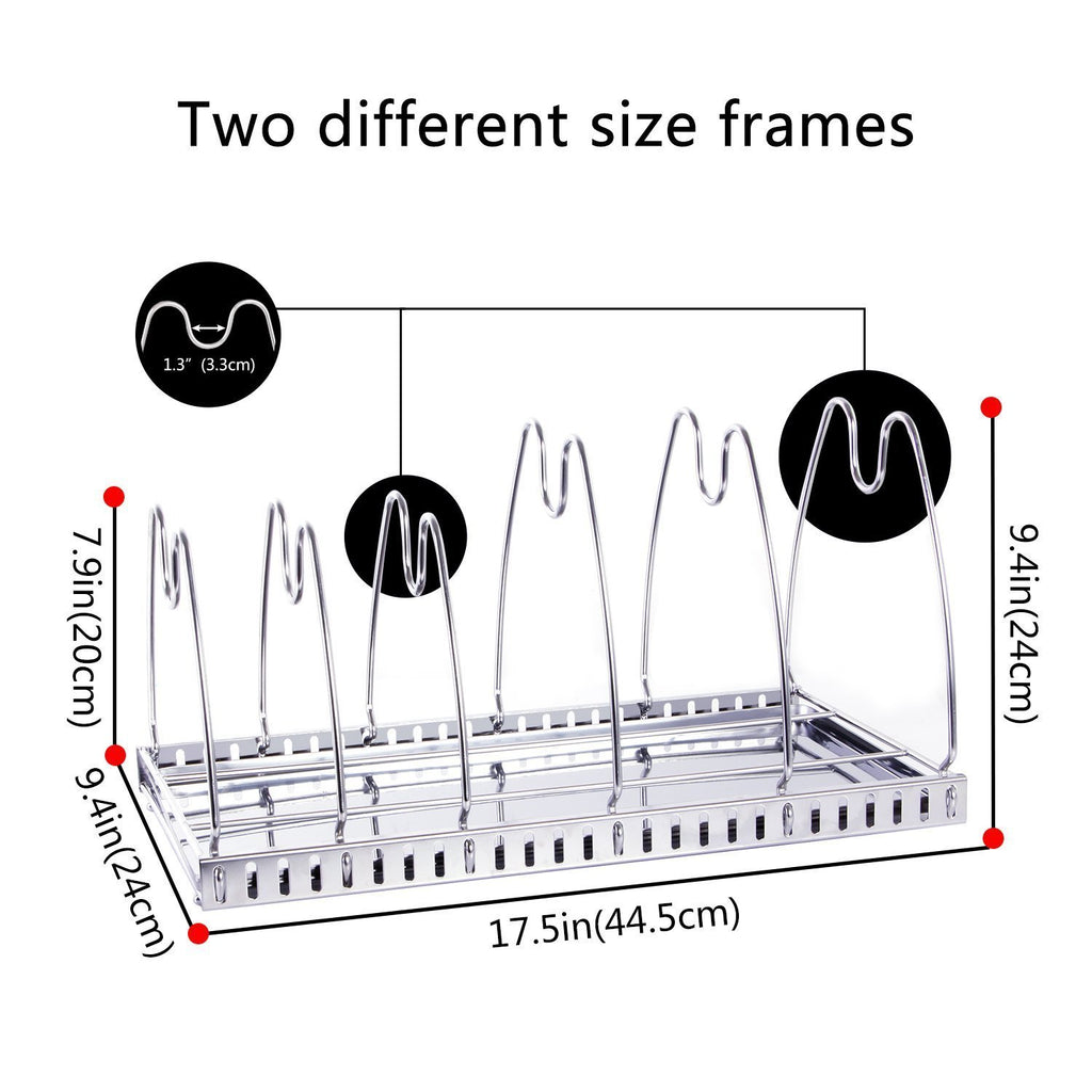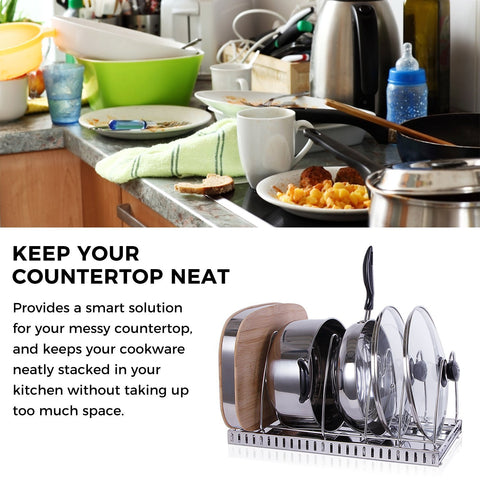 IDEAL STORAGE SOLUTION - The Lifewit Adjustable Pot Lid Rack is suitable for organizing a wide variety of cookware, bakeware and even dishware. It is an ideal organization solution for shelfless cabinets, disorderly worktop & areas under the sink ( please make sure the space is taller than 9.5 inches ).
