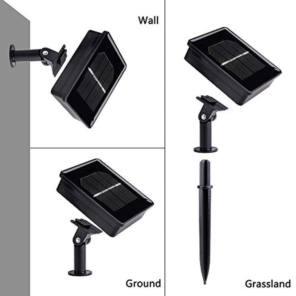 ✔️ EASY INSTALLATION LED STRING LIGHTS: No wire required. 2 in 1 stake allow you to stick into the ground or use included screws to mount on the wall, the solar panel box is separated from the string lights with a waterproof connector on each part