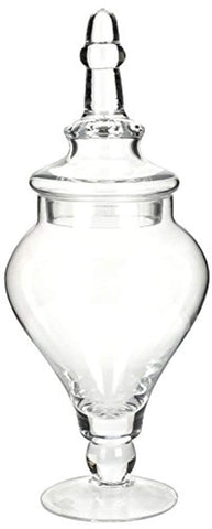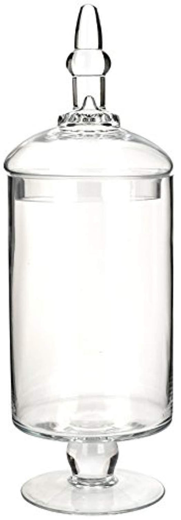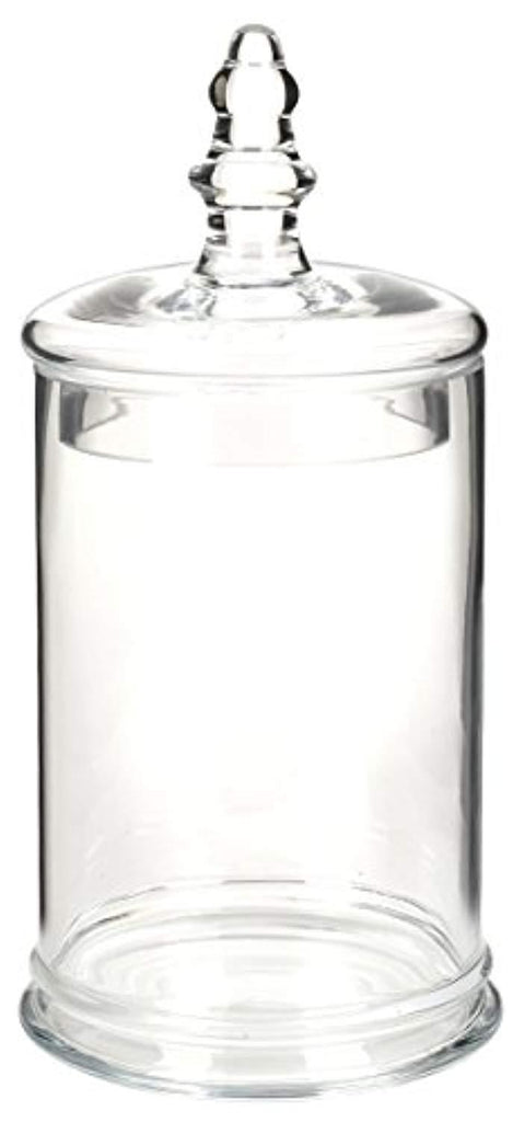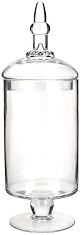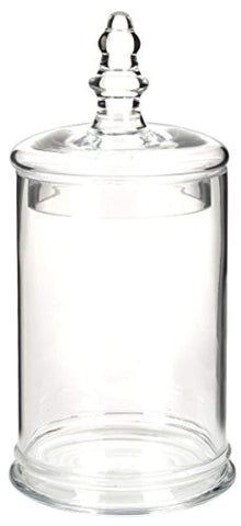 Dims from Large to small w/ lids : 14.3" H x 3.6" W , 12.5" H x 5" W, 8.8" H x 4.2" W Perfect for use as wedding centerpieces, candy buffets, decor. Elegant clear glass Perfect for home décor use in the bathroom, kitchen, bedroom or any room in between Put seashells, flowers, small dried pasta, dried beans, grains, cookies, candy, fruit, and more