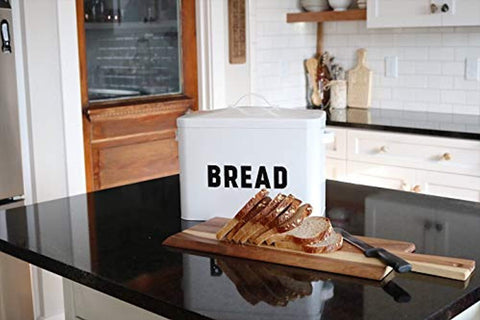 • DURABLE ALL METAL CONSTRUCTION featuring a clean white powder-coating with big bold BREAD lettering. Built to last with thick solid metal, just like the vintage porcelain enamel bread boxes from years ago.