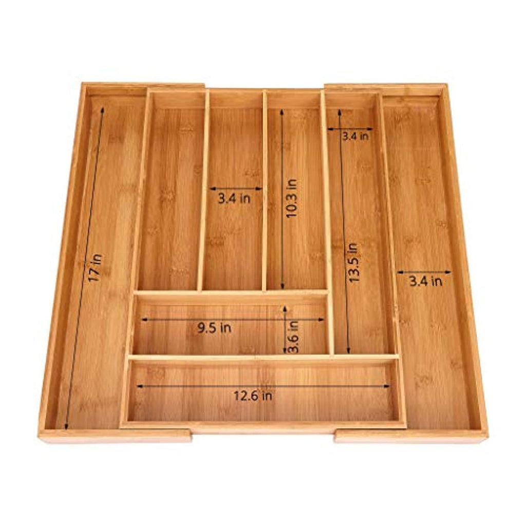 • The utensil organizer is composed of many size compartments to fit all size utensils. Durable and ready to last you a lifetime, enjoy the bamboo expandable cutlery tray in your drawer and keep things neat.