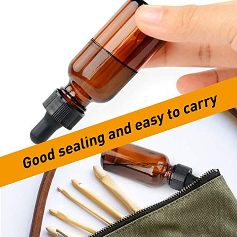 Nelipo 1oz Amber Glass Bottles for Essential Oils with Glass Eye Dropper - Pack of 6