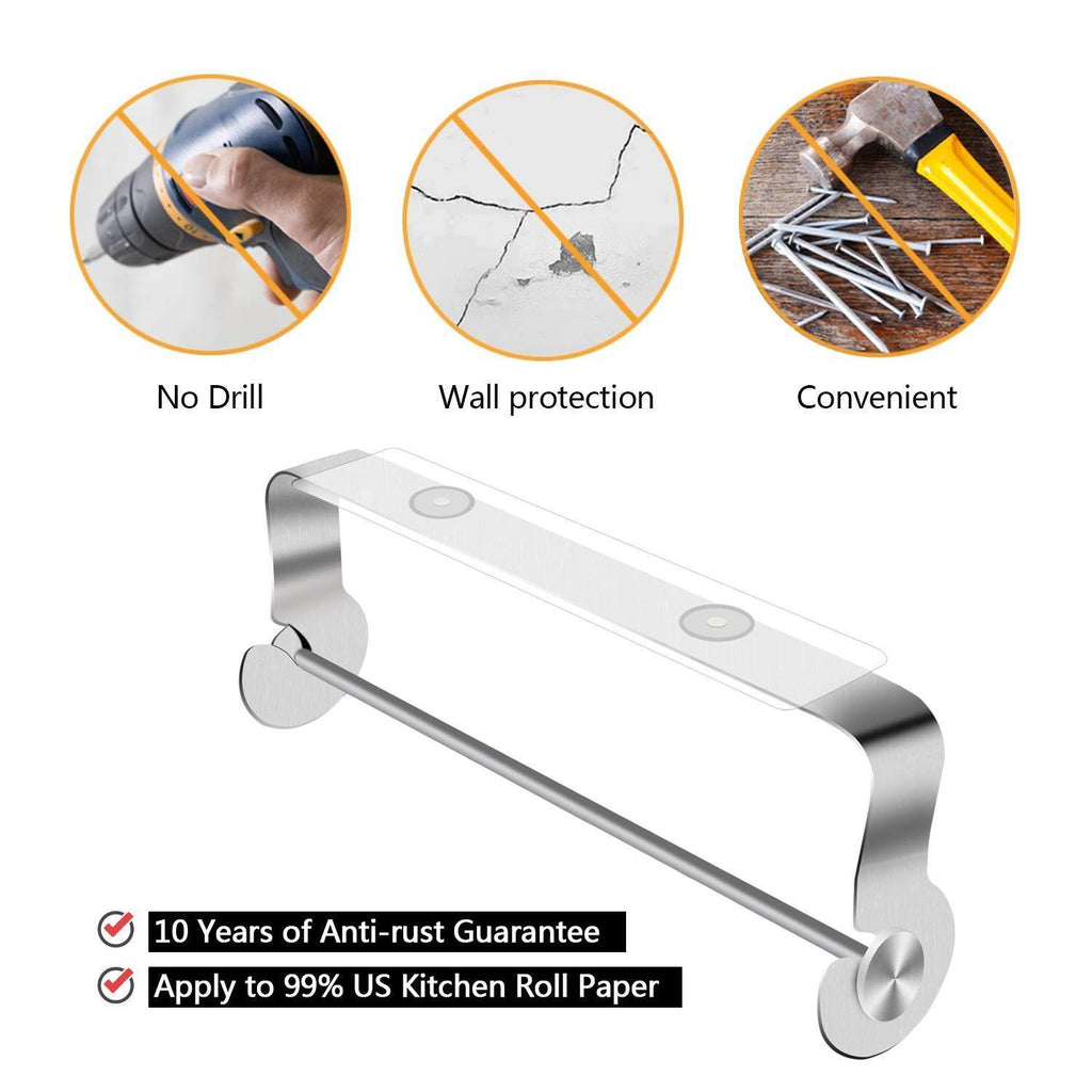 Paper Towel Holder Under Cabinet, Adhesive Wall Mount Paper Towel Holder for Kitchen, Bathroom, Pantry, Utility Room, Brushed 304 Stainless Steel (NO Drilling)