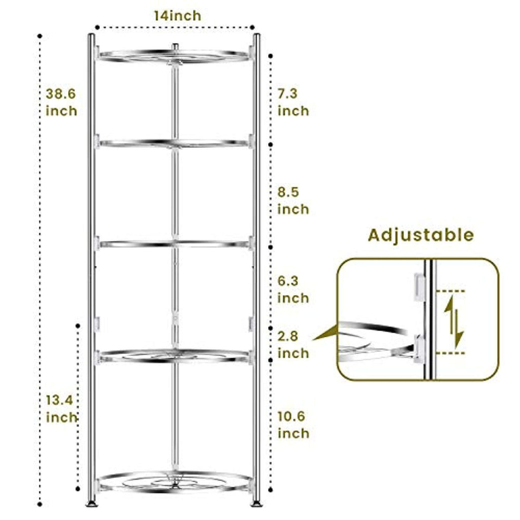 FIT LARGE PAN AND POT: The height between 2 layers is different, the shortest 6.3 inches, the highest 13.4 inches, the fourth layer's position can be adjusted as your need. This pot holder fits pots, pans, CAST IRON skillets, griddles with lids from sizes small to large