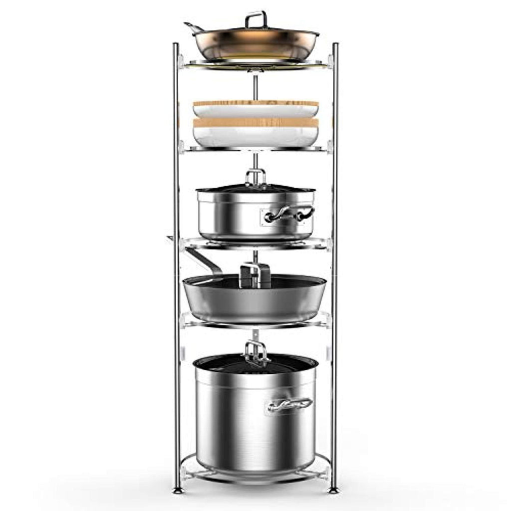 Pot and Pan Organizer, Lifinity 5-Tier Pot Rack Heavy Duty Cookware Stand for Kitchen Organization and Storage Free-Standing Kitchen Organizer for Pot and Pan, Stainless Steel (38.6''Tall)