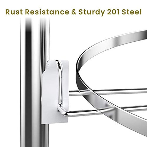 DURABLE CONSTRUCTION: Make of high quality stainless steel which is durable, rust-proof, and easy to clean. This kitchen organizer rack is firm enough to hold heavy duty cookware such as cast iron skillets and dutch ovens