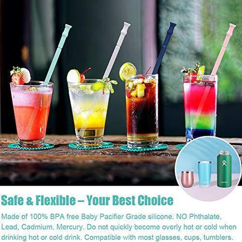 FAMILY SAFE & FOR HEALTHY TEETH: The soft, flexible bendy nature of silicone straws keeps kids and adults safe from eye pokes, throat gouges, and chipped teeth. Soft to bite down on, no hard stainless steel straws banging on your teeth or breakable glass straws cutting your lips!They are perfect for those straw chewers out there! And the silicone straws don’t get hot when hot drinks or cold with smoothies (unlike stainless steel metal straws).