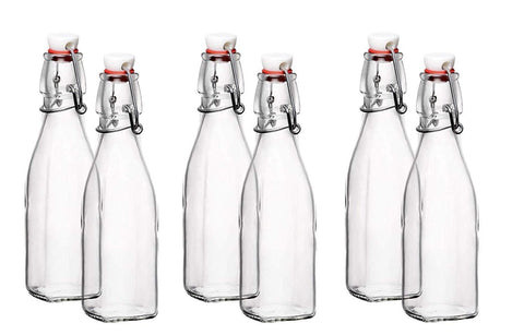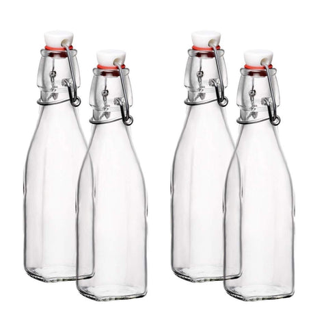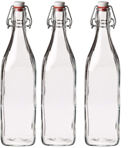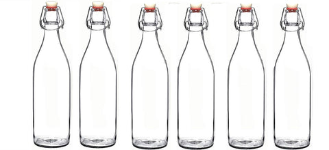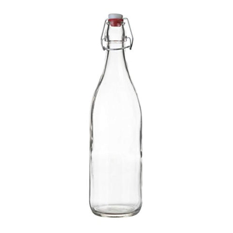 Seacoast Clear Glass Bottle with Swing Top Stopper, 33.75 Oz Round Pack of 4