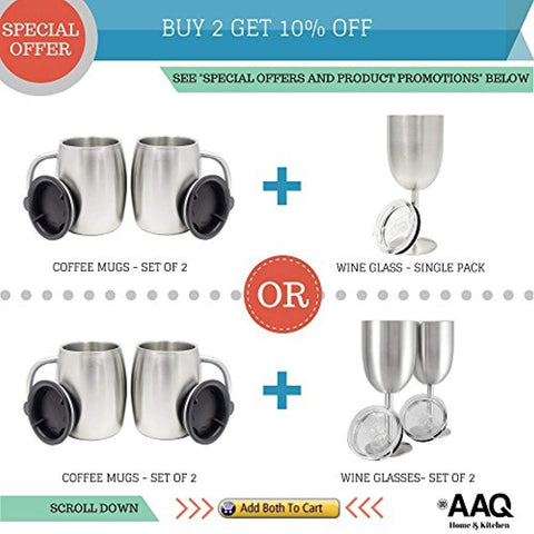 Set of 2 II 14-Oz Double Wall Vacuum Sealed Insulated Tea/Coffee Mugs with Splash Resistant Lid || Premium Food Grade 18/8 Stainless Steel || BPA-Free by AAQ Home & Kitchen