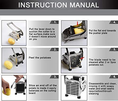 【Strong suction base】- Comes with a strong suction base and a single push of the lever makes for safe and comfortable to use. Just insert potatoes into cutter and with a gentle push.