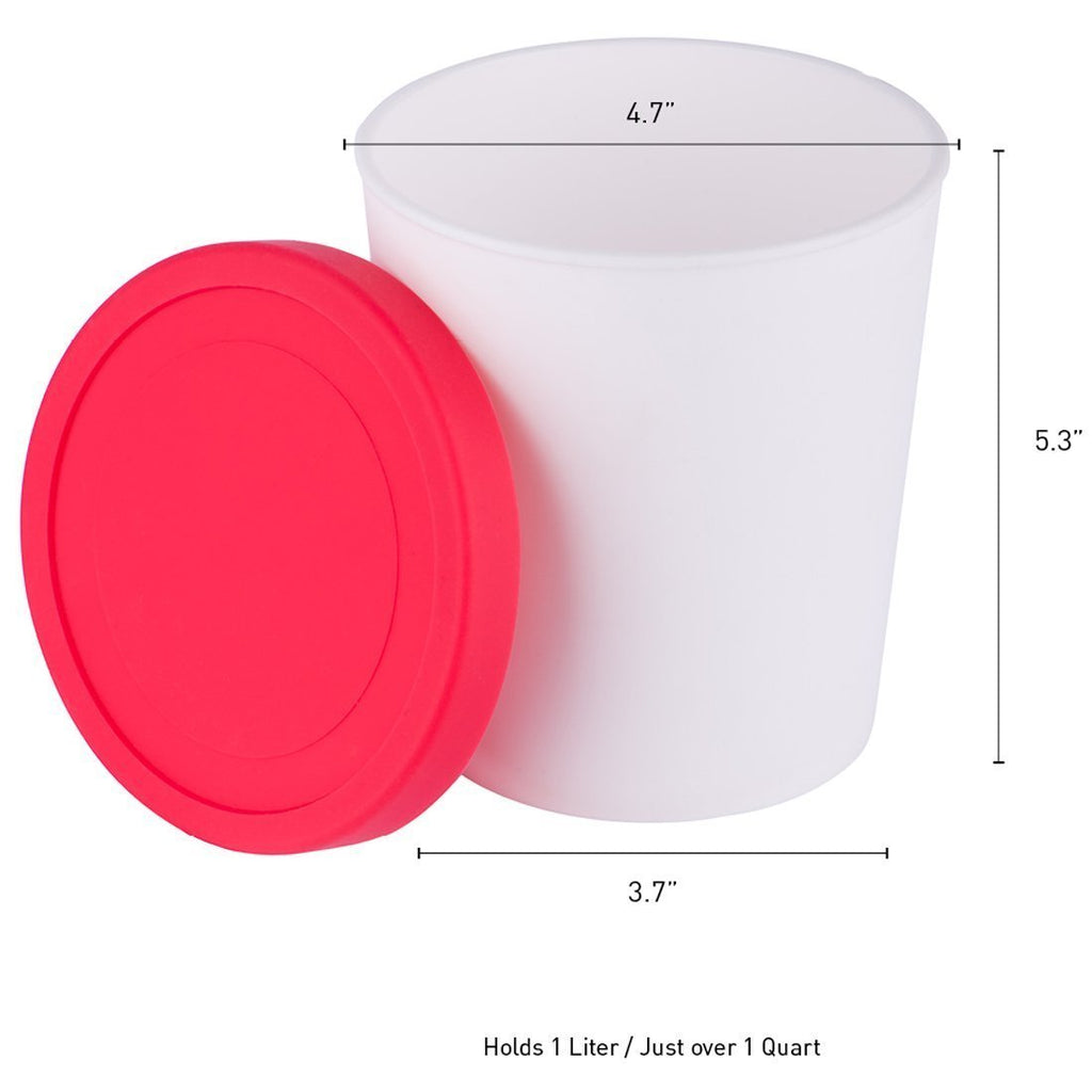 STYLISH, STURDY & REUSABLE ICE CREAM CONTAINERS - Perfect for storing and gifting homemade ice cream, each freezer-safe container holds 1 Liter (just over 1 Quart) and measures 5.3” tall X 4.7" Wide (Mouth). 2 containers per set