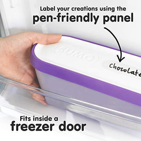 FITS IN ANY FREEZER STORAGE: The SUMO Ice Cream Container can be squeezed in a jam-packed freezer or freezer door perfectly due to its slender design. It can be neatly stacked on top of each other because of its size and shape. Very easy to store.