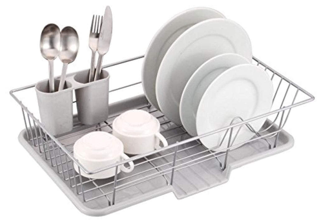 Sweet Home Collection 3 Piece Dish Drainer Rack Set 12" x 19" x 5" Silver