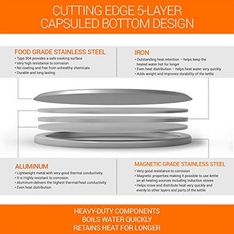 ★ TASTE THE TEA, NOT THE KETTLE: The Vescoware Stove Top Tea maker is built to give you hot water that taste exactly as it is meant to be – thanks to the use of the highest quality food Grade metals with no coating whatsoever.