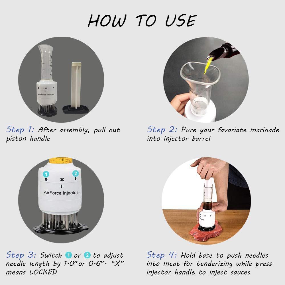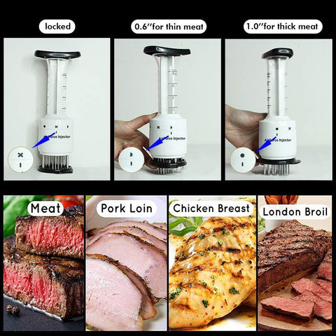 • ✅【2-in-1 Efficient & Distinctive Designs】tenderize meat and inject sauce into the meat at the same time, it will greatly reduce time of marinade and cooking, improving your cooking efficiency and saving your time