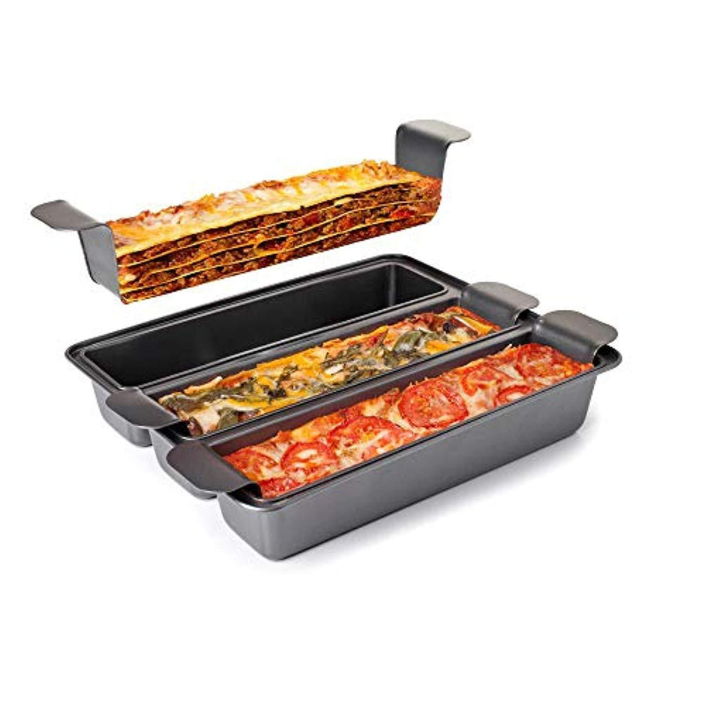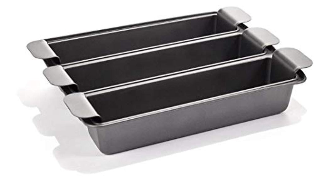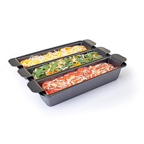 Bake 3 Different Recipes Simultaneously Fill, Bake, Lift Each section, 12-1/2"W x 3-1/8"D x 2-1/4"H, Overall 15-1/2"W x 11-3/4"D x 3"H Carbon Steel Oven and Dishwasher safe