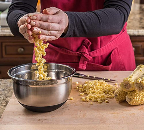 STYLISH UPSCALE MODERN DESIGN: Stainless steel always looks great, but extra touches like measurements etched on the inside of the bowl a no-slip silicone coating are both classy and functional.