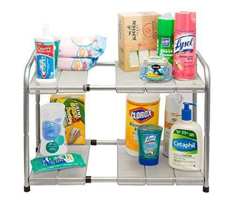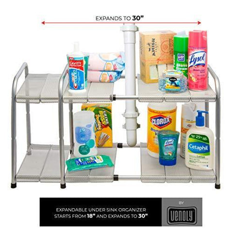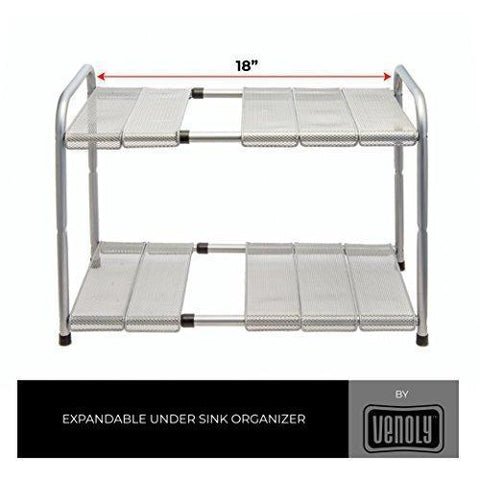 Venoly Home - Under Sink 2 Tier Expandable Shelf Organizer Rack, Silver - Expands from 18 Inches to 30 Inches