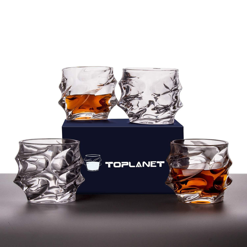 🍻 Enjoy your leisure time - TOPLANET crystal whiskey glass, adopts lead-free clear crystal, show the color of whiskey perfectly. Handmade crafted, beautiful just like artwork, bring you a more pleasure experience. Comes with 4 eco-friendly non-slip multi-function silicone coasters for your use.(❗❗Please Only Purchase Store Yougelai Product, Other Store Sells Wrong TOPLANET Item,Please don't Buy From Them❗❗)