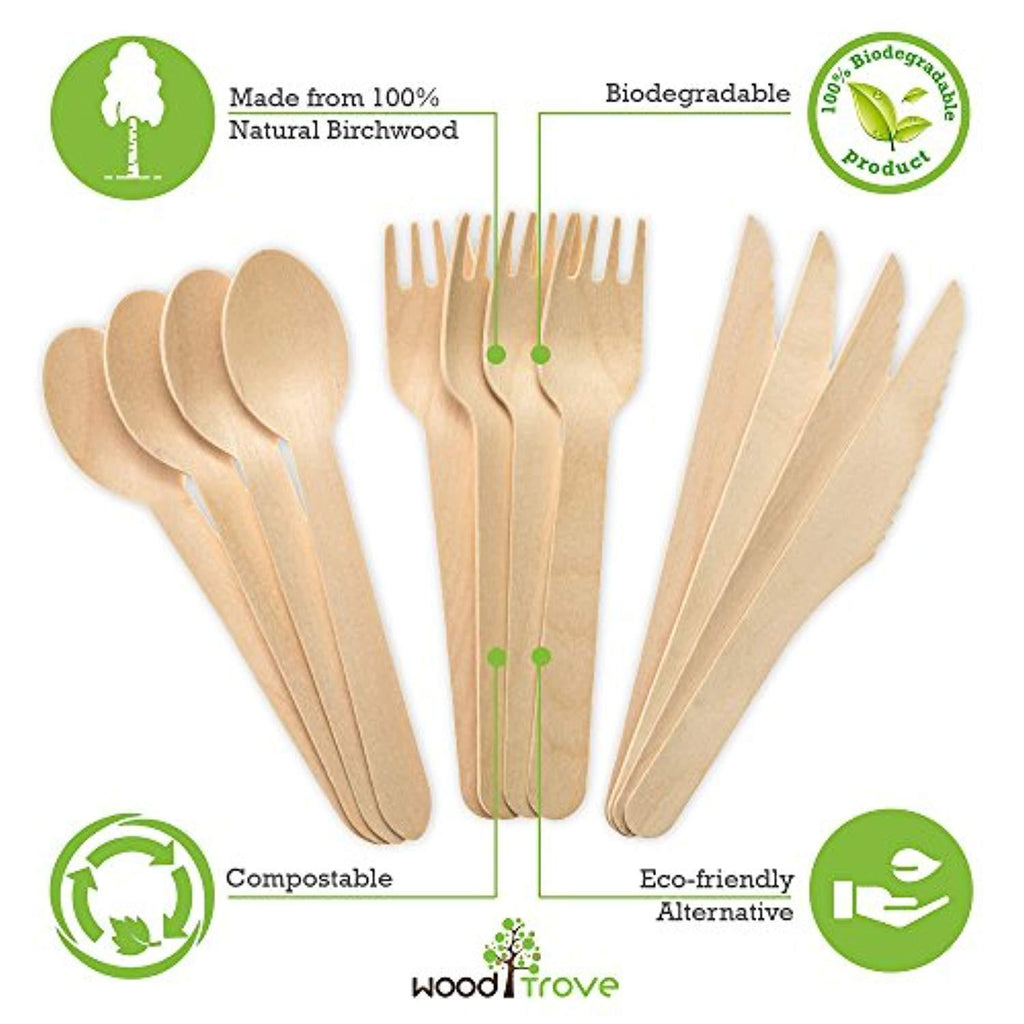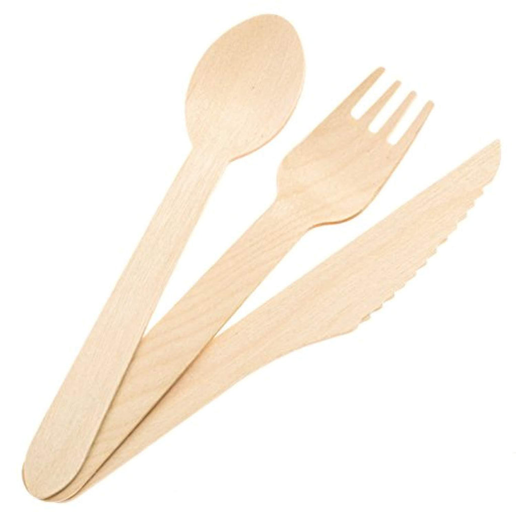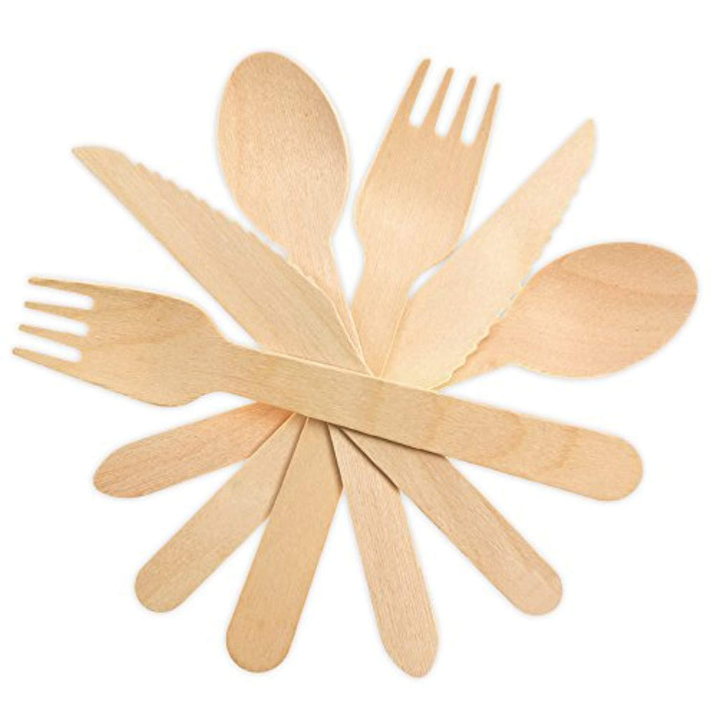 Wooden Disposable Utensils Set 100 Forks 50 Spoons 50 Knives Wood Cutlery Eco Friendly Compostable Biodegradable Silverware Party Flatware Kitchen Serving Eating