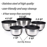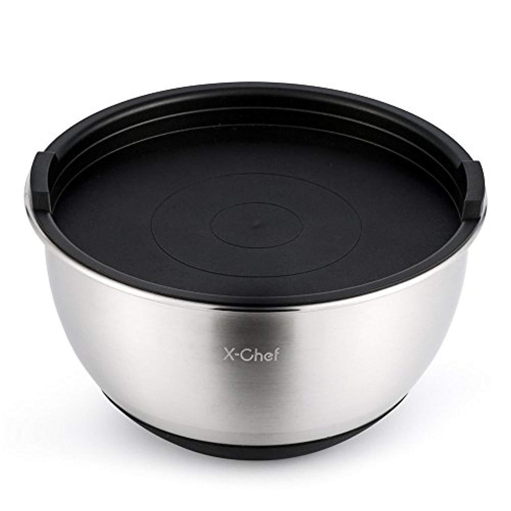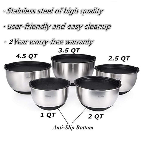 X-Chef Stainless Steel Mixing Bowls Set With 5 Lids and Anti-Slip Bottom, Measurement Marks, Non-Slip, Durable(Set of 5)