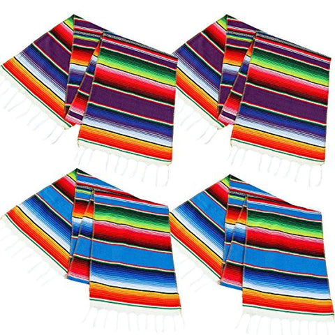 Aneco 4 Pack 14 by 84 Inch Mexican Table Runner Mexican Serape Blanket Cotton Colorful Fringe Table Runners for Mexican Party Wedding Kitchen Outdoor Decorations