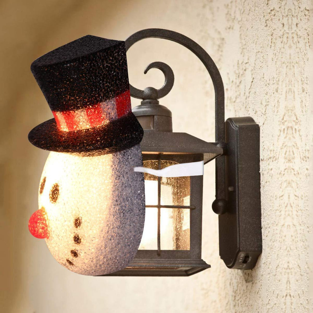 π EYE-CATCHING LOOK. It's absolutely a surprise result: a holiday icon attach to an outdoor light. The light from the snowman is very beautiful, and its nose is red, adding a touch of warmth to your cold winter.