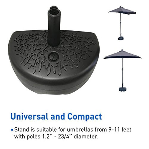 VERSATILE AND DEPENDABLE - Fitting securely up against a wall, this half umbrella stand base works well with a half umbrella as a patio umbrella base stand or a deck umbrella base.