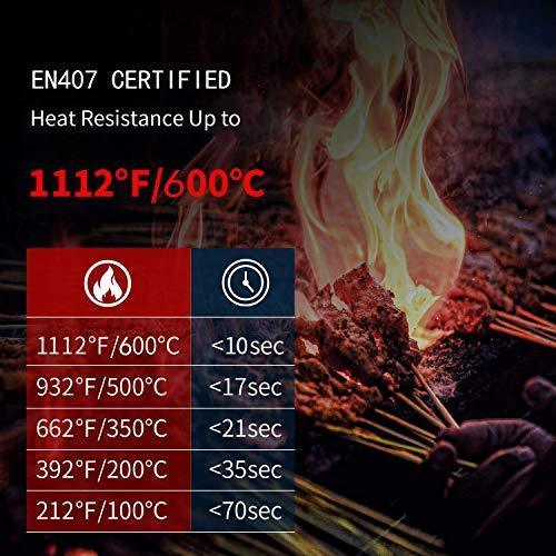 ★Premium ICCKER Heat Resistant Grill Gloves: The BBQ gloves adopt double-layer design, the outer layer is made of Kevlar 1313, Aramid 1414, and silicone which can withstand up to a heat of 1112°F (600°C); The inner layer is woven with insulated polyester cotton yarn, absorbing sweat and feeling good. The gloves are built to provide twice protection than most others because of our unique extended sleeve design!