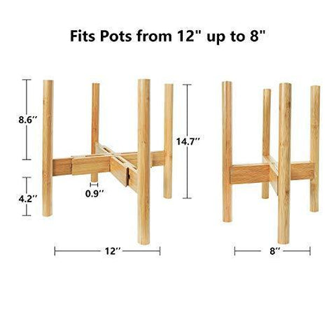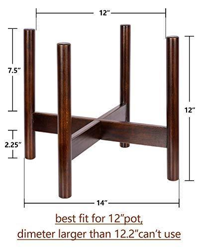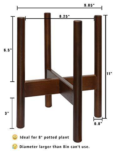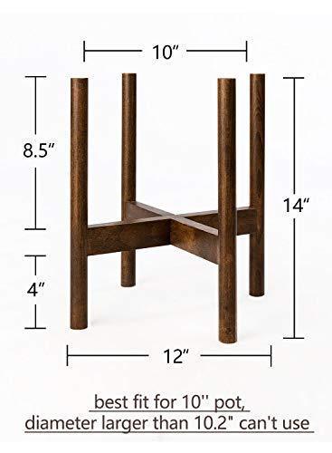 Fits 8 - 10in Flower Pot: 14" Height, 10" Interior diameter. Ideal for 10inch potted plant and fits pots from 8" up to 10". 4 legs are about 1 inch in diameter, which increases the maximum weight of the flower pot stand. Handcrafted from dark hardwood and use dowel construction methods for strength and durability
